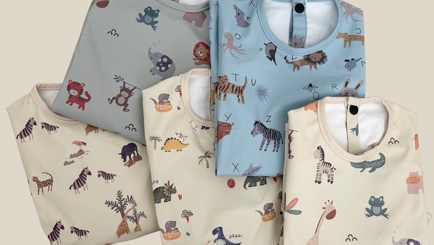 Smock bib is great, bought two for little grandson. Would love if they came in smaller sizes as they are too big and he’ll need to grow a bit more for a better fit.